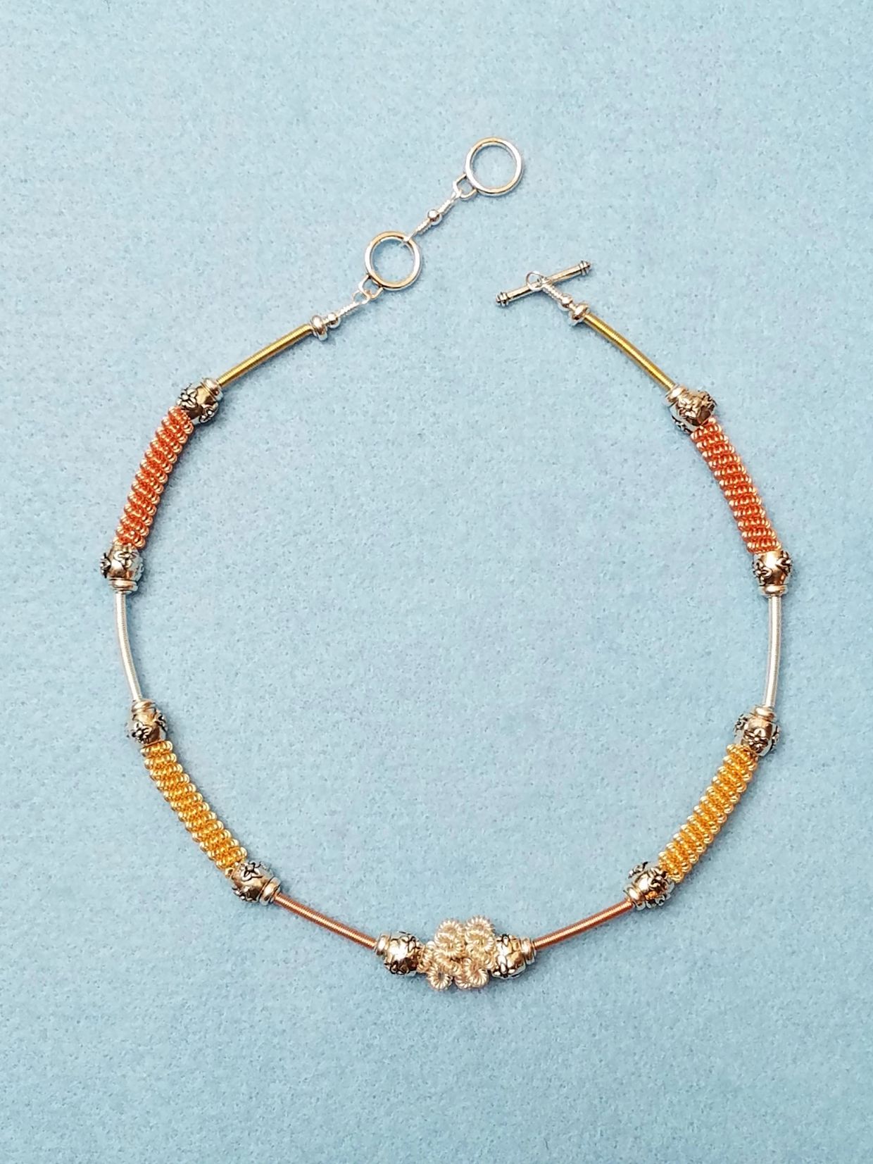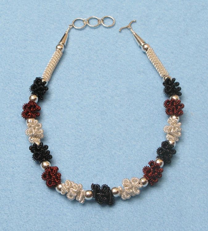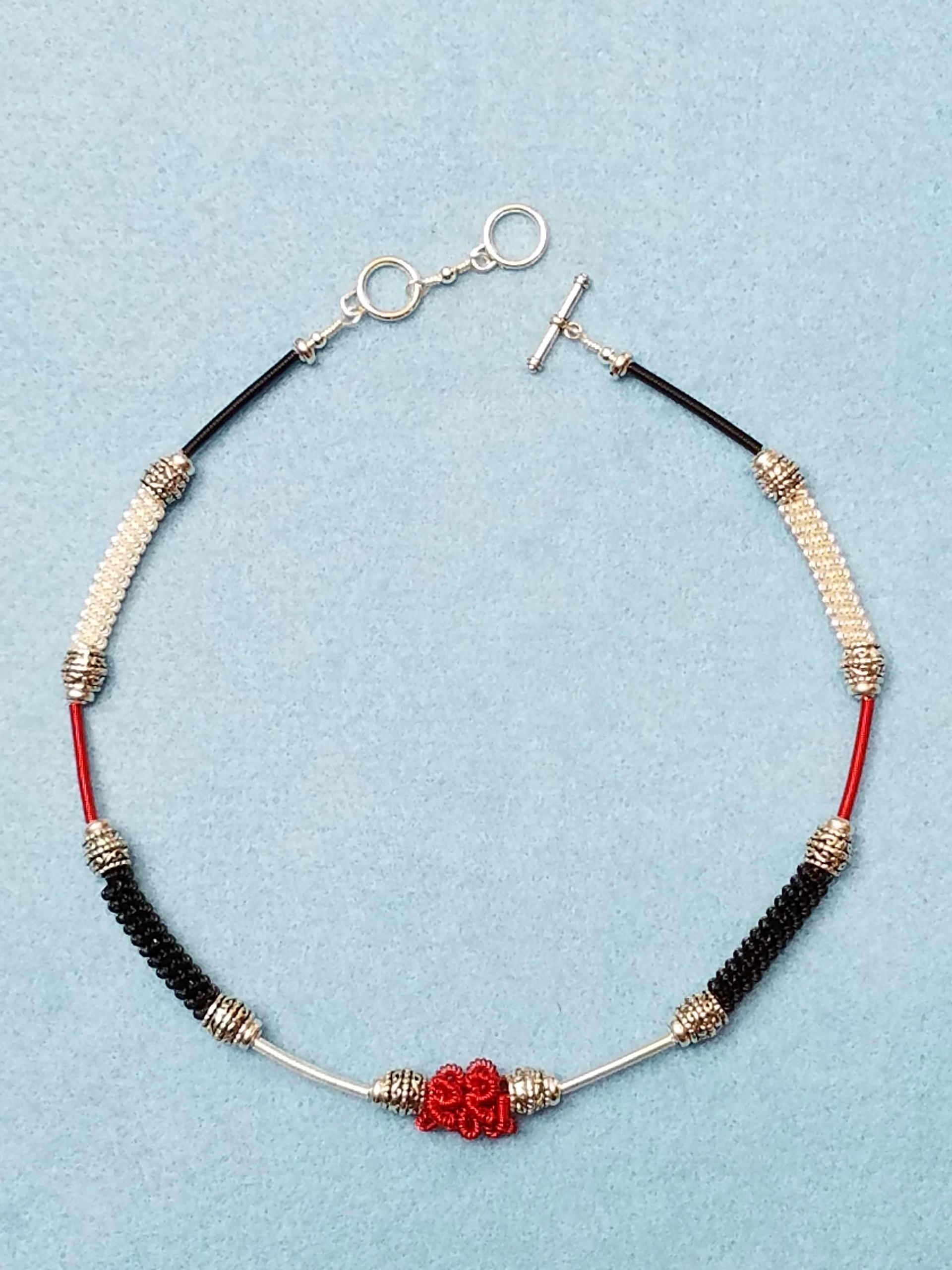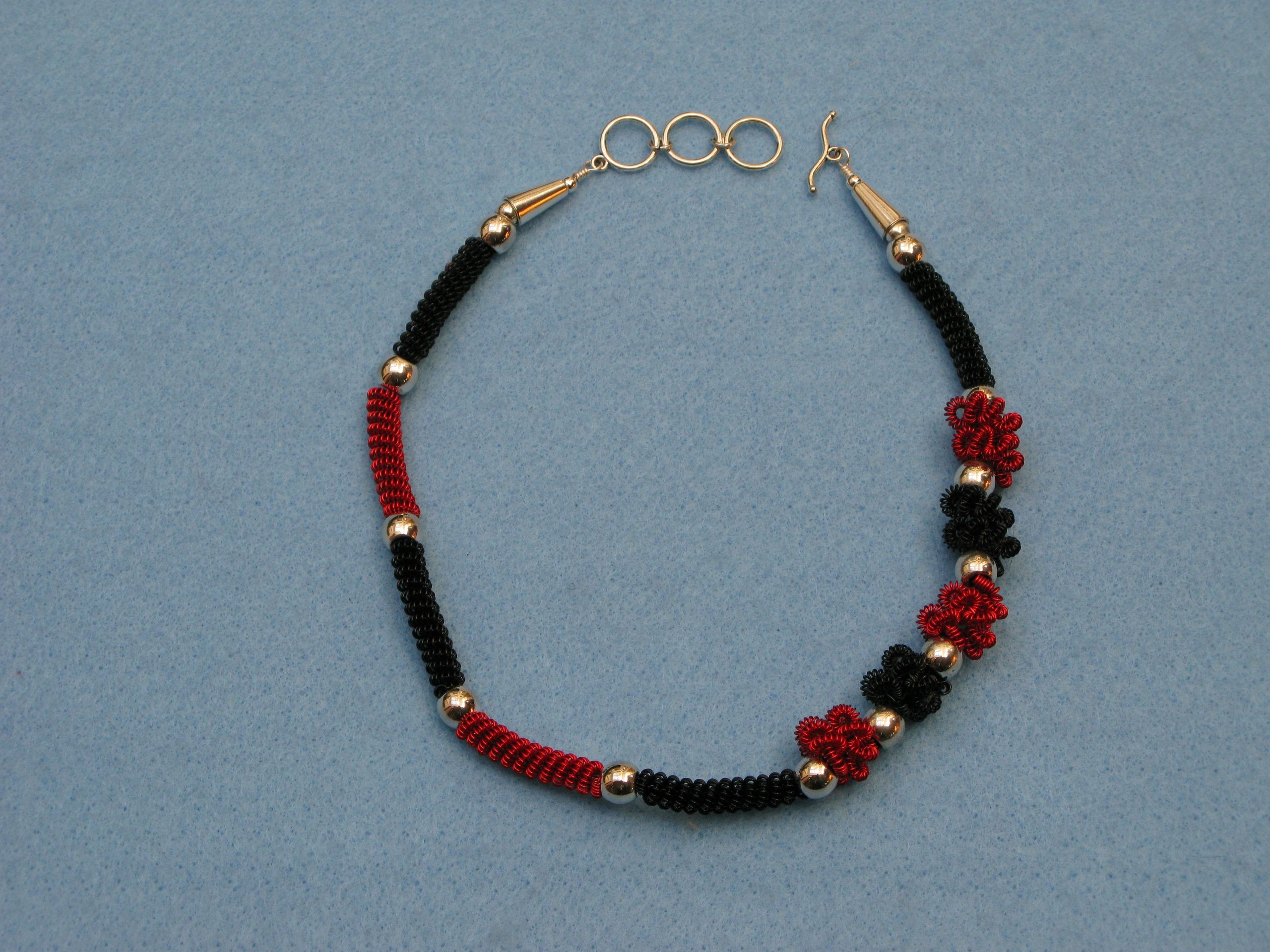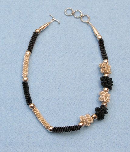 Pewter and black glass four-strand necklace, shortest strand 18 1/2 inches, longest strand 22 inches, $68.