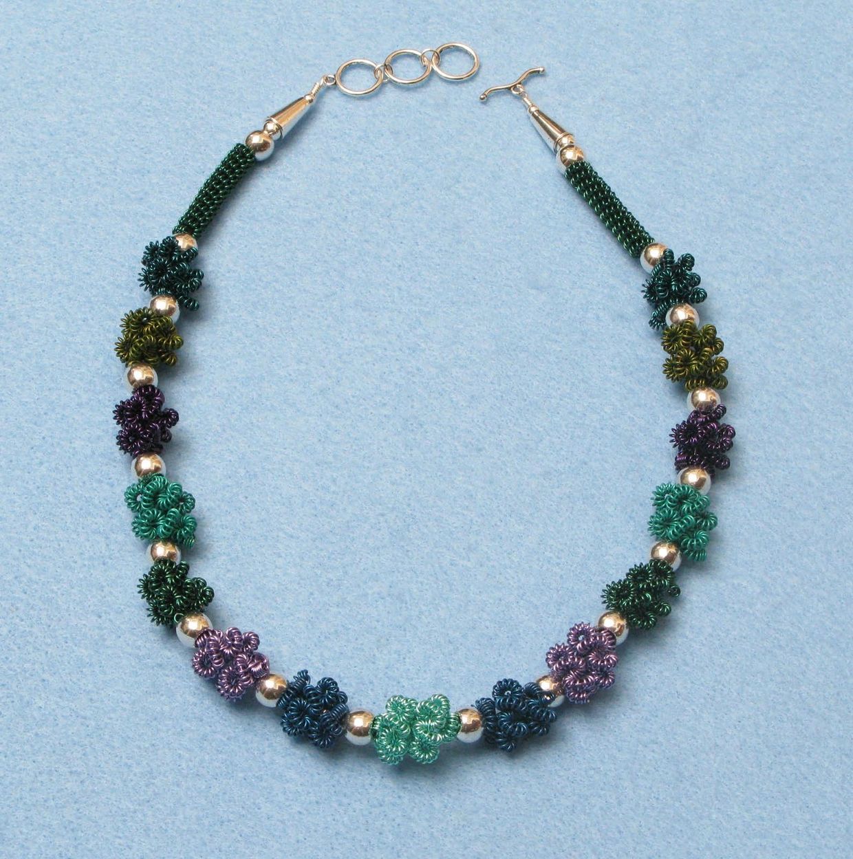 Nine-strand crystal and glass necklace, purple/blue tones, magnetic clasp, 18 1/2 inches, $68 (available in other color tones).