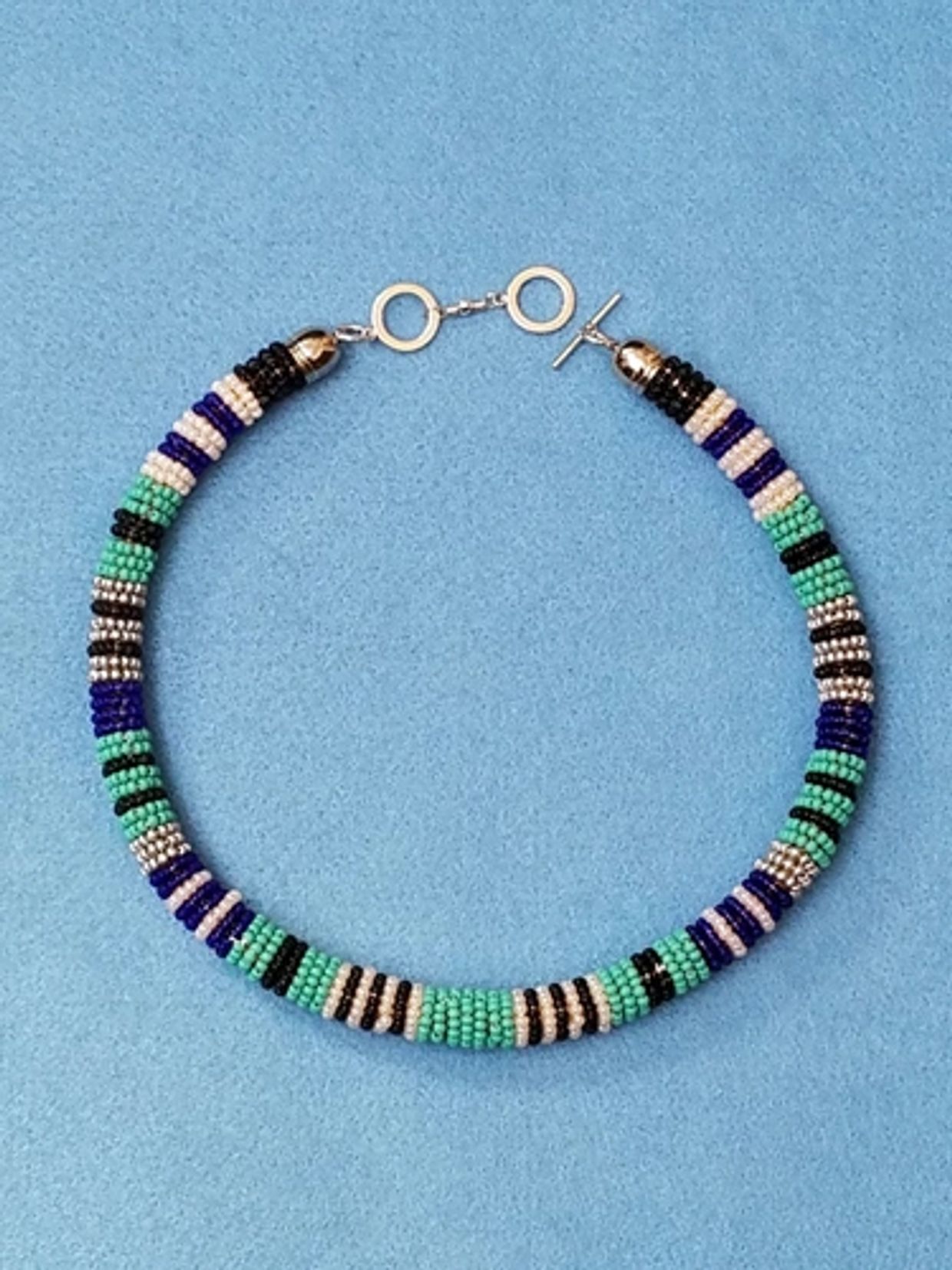 Three-strand turquoise and blue stone necklace, shortest strand 16 - 18 1/2 inches, longest strand 18 1/2 - 21 inches, $68.